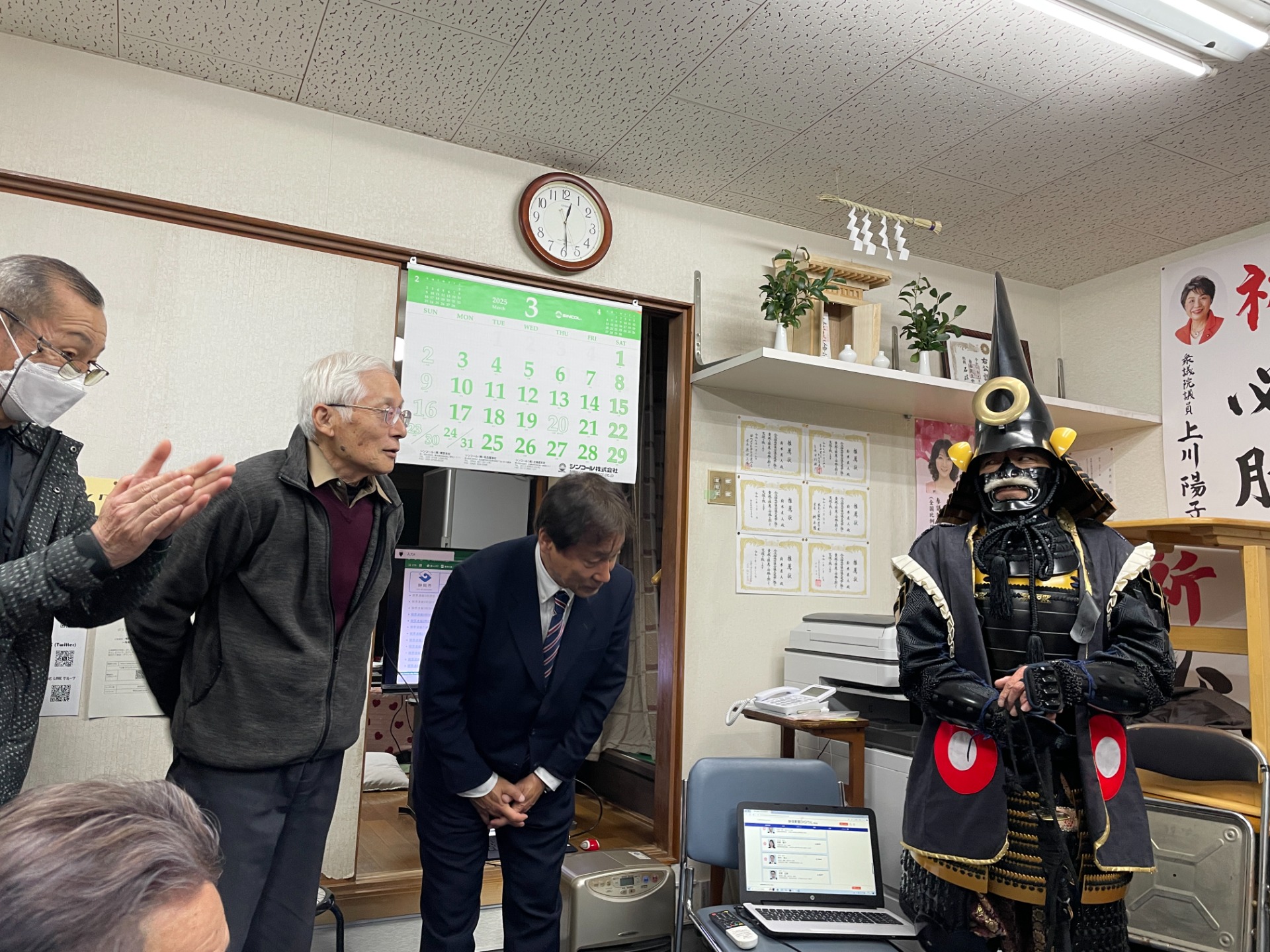 この度は、鎧兜の戦国武士が24時を回った夜中に駆けつけてくれました。